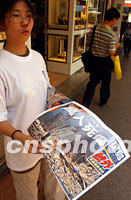 組圖:香港市民關(guān)注美國(guó)遭空襲事件 2001年09月12日 14:29 ![]() 昨日美國(guó)遭受歷史上最嚴(yán)重的恐怖襲擊后,今日一大早香港市民就聚集到報(bào)館的櫥窗前觀看有關(guān)情況。中新社記者 任海霞 攝 ![]() 美國(guó)遭受恐怖襲擊后,許多香港市民在巴士上看報(bào)紙關(guān)注事態(tài)發(fā)展。中新社記者 任海霞 攝