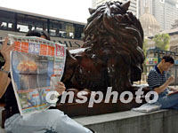 ![]() 9月12日上午,一名香港市民在匯豐銀行總部前的大獅子前閱讀美國(guó)局勢(shì)的報(bào)紙。中新社圖 任晨鳴 攝 |