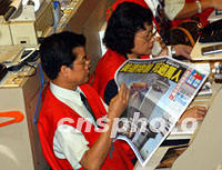 組圖:美國受襲后港股市、聯(lián)交所照常開市 2001年09月12日 14:44 ![]() 美國遭受恐怖襲擊后,股市無限期停止。今日香港股市正常開市。中新社記者 任海霞 攝 ![]() 美國遭受歷史上最嚴(yán)重的恐怖襲擊后,九月十二日早晨許多香港市民來到銀行焦急地查看股市行情,關(guān)注股市的變化。中新社記者 任海霞 攝