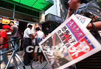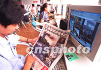 組圖:北京大學(xué)生全面關(guān)注美國(guó)“爆炸事件” 2001年09月12日 16:21 ![]() 十一日發(fā)生的美國(guó)受襲“爆炸事件”引起北京媒體關(guān)注,十二日一家媒體特意加印號(hào)外,北大學(xué)生午休時(shí)間紛紛搶購(gòu)。中新社圖 張宇 攝 ![]() 十一日發(fā)生的美國(guó)受襲“爆炸事件”引起北京大學(xué)生關(guān)注,十二日中午北京大學(xué)附近近千臺(tái)電腦的網(wǎng)吧內(nèi)座無(wú)虛席,一名學(xué)生邊瀏覽網(wǎng)頁(yè),邊翻閱報(bào)刊,全面關(guān)注此次“爆炸事件”。中新社圖 張宇 攝