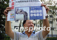 圖文:北京各大報紙以突出版面報道美大爆炸事件 2001年09月12日 16:36 ![]() 十一日發(fā)生的美國受襲“爆炸事件”引起了北京媒體的全面關注,十二日清晨報攤攤主高舉報紙頭版向路人吆喝。中新社記者 鄭萍萍 攝