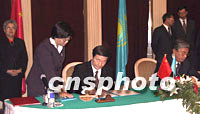 圖文:中國與哈薩克斯坦發(fā)表兩國政府聯(lián)合公報 2001年09月14日 14:42 ![]() 首次訪問哈薩克斯坦共和國的中國總理朱镕基,九月十二日在哈首都阿斯塔納與哈總理托卡耶夫共同簽署中哈聯(lián)合公報。中新社記者 孟慶雷 攝