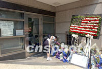 圖:美國(guó)駐香港總領(lǐng)事館門前獻(xiàn)花人不斷 2001年09月17日 17:40 ![]() 美國(guó)紐約世貿(mào)中心受攻擊后,每天都有人到美國(guó)駐香港總領(lǐng)事館獻(xiàn)花悼念遇難者。9月17日美國(guó)駐香港總領(lǐng)事館再度關(guān)閉,但依然不時(shí)有人在緊閉的大門外獻(xiàn)上寄托哀思的鮮花。中新社傳真 任晨鳴 攝 |