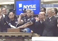 圖文:美國紐約證券交易所休市四天后重新開市 2001年09月17日 21:35 ![]() 美國紐約證券交易所休市四天后重新開市 ![]() 開市前全場人員為美國遇襲事件中的死難者默哀了兩分鐘
