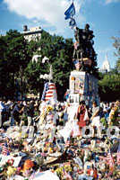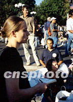 組圖:曼哈頓聯(lián)合廣場成公眾悼念場所 2001年09月22日 13:38 ![]() 曼哈頓下城,離世貿(mào)中心不遠(yuǎn)處的聯(lián)合廣場,“九一一”以來成為紐約客悼念死難者的場所。這里遍地是花束、燭臺、國旗和失蹤者的像片,整日人來人往,昔日各種街頭露天表演不復(fù)見。中新社記者 郭健 攝 ![]() 自發(fā)悼念“九一一”遇難者是眼下紐約的特殊景觀。這位女畫家正在作現(xiàn)場速寫。中新社記者 郭健 攝