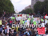 九月二十九日,成千上萬美國反戰(zhàn)人士匯集華盛頓,舉行反戰(zhàn)游行。他們高舉“不要戰(zhàn)爭,不要種族主義”,“戰(zhàn)爭是恐怖”,“停止軍事暴力”等標(biāo)語牌,高呼口號。中新社記者 徐德金 攝