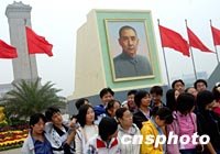 圖:中山像前紀(jì)念辛亥革命九十周年 2001年10月09日 10:32 ![]() 一班少男少女們十月歡聚在北京天安門廣場(chǎng)上的巨幅孫中山先生畫像前,游覽中懷念辛亥革命的先驅(qū)。中新社記者 賈國榮 攝 |