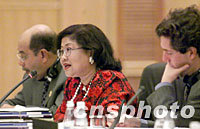 圖文:馬來西亞官員稱美國靠武力無法解決恐怖主義 2001年10月17日 18:44 ![]() 10月17日,2001年亞太經(jīng)合組織(APEC)部長級會議在上海國際會議中心開幕。這是馬來西亞貿(mào)工部長拉菲達·阿齊茲在會上發(fā)言。中新社圖