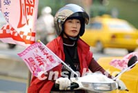 圖:臺北“摩托女郎”穿行于街巷爭取選票