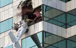未獲批準強行起飛 美15歲高中生駕機撞樓(圖) 2002年01月06日 09:17 ![]() 撞樓現(xiàn)場 中新網(wǎng)北京1月6日消息:外電報道說,一架小型飛機5日下午撞進美國佛羅里達州坦帕市一棟40層大樓后墜毀。墜毀飛機的駕駛員是一個15歲的高中生。根據(jù)當?shù)胤梢?guī)定,他不能單獨駕駛飛機。 據(jù)美聯(lián)社報道,雖然聯(lián)邦調查局初步認為此次飛機撞擊大樓事件與恐怖主義無關,但仍派遣了調查人員前往現(xiàn)場。 美國海岸警衛(wèi)隊官員說,這架飛機是在沒有獲得有關當局批準的情況下起飛的,而且駕駛員對要求其降落的信號置之不理。海岸警衛(wèi)隊直升飛機隨即對這架單引擎飛機進行了跟蹤飛行。當時,兩架飛機距離最近時只有幾米。海岸警衛(wèi)隊官員皮特曼毫不懷疑小型飛機上的駕駛員明白直升飛機要求其降落的信號。 目前還沒有關于人員傷亡的報道,大樓在撞擊后沒有起火。飛機的機尾還懸掛在大樓外側。 |