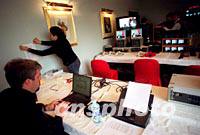 組圖:中外媒體聚焦美國總統(tǒng)布什訪華 2002年02月20日 14:44 ![]() 二十日,專程來京采訪美國布什總統(tǒng)訪華的美國電視聯(lián)合記者采訪團(US TV POOL),已在北京香格里拉飯店安營扎寨。中新社記者 史利 攝 ![]() 二十日,在北京香格里拉飯店設立的中方新聞中心,中國記者們正在精心策劃,周密布置。一場采訪美國布什總統(tǒng)訪華的新聞大戰(zhàn)即將開始。中新社記者 史利 攝