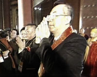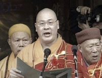 組圖:法門寺佛指舍利赴臺瞻禮恭送法會盛況 2002年02月22日 16:07 世間僅存的釋迦牟尼佛指舍利 ![]() 西安法門寺隆重舉行佛指舍利恭送法會 ![]() 中國佛教協(xié)會副會長圣輝法師在恭送法會上致辭 ![]() 臺灣佛光山星云法師為佛指舍利拈香 ![]() 臺灣社會名流吳伯雄(右)和中國佛教協(xié)會副會長兼秘書長刀述仁為佛指舍利拈香 中新網(wǎng)西安2月22日消息:佛界圣物、西安法門寺佛指舍利即將赴臺供奉瞻禮。今天下午3時至4時30分,西安法門寺為此舉得隆重的恭送法會。 據(jù)悉,此次赴臺期間,佛指舍利將巡回臺北、臺中、南投和高雄等地,供佛教僧俗二眾和社會各界瞻仰。