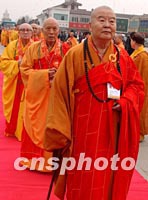 圖:星云法師率臺(tái)灣佛家弟子出席大法會(huì) 2002年02月22日 19:54 ![]() 法門(mén)寺佛指舍利赴臺(tái)灣地區(qū)瞻禮(供奉)法會(huì)儀式二十二日在西安法門(mén)寺舉行,來(lái)自臺(tái)灣的恭迎團(tuán),由大陸佛教人士組成的護(hù)送團(tuán)以及護(hù)法團(tuán)等各界有關(guān)人士千余人匯集法門(mén)寺。圖為星云法師率臺(tái)灣佛家弟子出席大法會(huì)。中新社記者 錢(qián)興強(qiáng) 攝