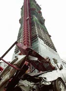 臺北"地標"建筑墜物停工 傾斜民宅將連夜支撐 2002年03月31日 20:08 ![]() 臺北“金融大樓”吊臂墜落砸毀轎車并造成傷亡。 中新網(wǎng)香港3月31日消息:臺北訊,臺北“國際金融大樓”工地在今天的大地震中吊臂墜落,造成至少4人死亡多人受傷的慘劇。臺北當局已經(jīng)要求業(yè)者停工。 預(yù)定興建101層樓的臺北“國際金融大樓”,曾被預(yù)計為臺北未來的一座“地標”性的建筑,目前已經(jīng)興建到一半的高度。但在地震發(fā)生時,架設(shè)在頂部的兩具吊臂與支架發(fā)生松脫而墮落,其中一具甚至掉落在馬路上。 依照當局規(guī)定,任何工地都必須依照規(guī)定設(shè)置防震性的防護措施。但“金融大樓”頂樓的吊臂在設(shè)置時是否合乎安全規(guī)定?吊臂支撐是否穩(wěn)固?將成為當局調(diào)查的重點。 臺北市的“建筑管理處”今天已要求調(diào)查業(yè)者在施工時是否做好安全措施,并厘清肇事責任歸屬。 此外,臺北市承德路一座民房因為強震而部分倒塌,臺北市“副市長”歐晉德在7名受困民眾全部被送往醫(yī)院后表示,將連夜完成支撐建筑體的工作,避免這棟傾斜的樓房進一步倒塌。