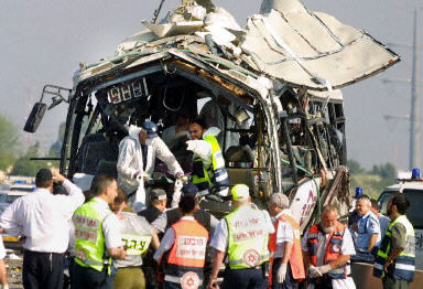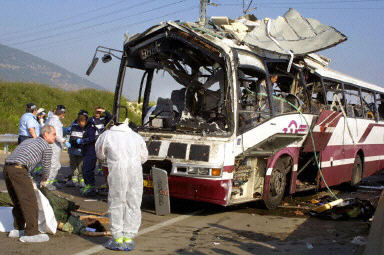多圖:海法發(fā)生汽車炸彈爆炸事件 哈馬斯宣布負責 2002年04月10日 17:01 ![]() 以色列警方在檢查爆炸汽車的殘骸 ![]() 救援人員將遇難者尸體從汽車殘骸內(nèi)抬出 中新網(wǎng)北京4月10日消息:當?shù)貢r間4月10日早(北京時間10日中午),以色列北部港口城市海法發(fā)生一起自殺爆炸事件,至少造成10人死亡,另有20人受傷。 爆炸發(fā)生在一輛公共汽車上,這輛車是從海法開往耶路撒冷的。以色列方面稱此次爆炸為“恐怖襲擊”,哈馬斯組織已經(jīng)宣布對此次爆炸事件負責。 爆炸發(fā)生前幾小時,以軍曾于黎明時分向約旦河西岸最大城市納布盧斯的巴勒斯坦難民營發(fā)動進攻,現(xiàn)場可見煙火沖天,以軍炮火、重機槍頻頻開火,以軍直升機也發(fā)射了多枚導彈。杰寧也發(fā)生了交火。 爆炸給海法帶來巨大恐慌,3月31日,海法一家餐廳就曾發(fā)生一起自殺性爆炸事件,造成16人喪生。昨晚,以軍士兵在約旦河西岸城市杰寧的難民營遭到伏擊,13人喪生,9人受傷。這是近18個月來以色列方面發(fā)生的最嚴重單起傷亡事件。以色列總理沙龍隨后稱,以軍在約旦河西岸的軍事行動將繼續(xù),直到將巴勒斯坦武裝分子徹底鏟除。(春風)