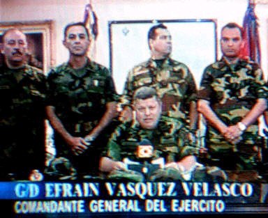 多圖:委內(nèi)瑞拉高級將領(lǐng)發(fā)表電視講話加入叛軍 2002年04月12日 12:22 ![]() 委內(nèi)瑞拉當?shù)貢r間4月11日晚(北京時間12日上午),國民警衛(wèi)隊的卡伊魯茲將軍宣布,總統(tǒng)查韋斯的政府已經(jīng)"不再履行其職能",全國局勢已經(jīng)被軍隊控制。此前已有多名高級軍官宣布不承認總統(tǒng)查韋斯,并要求其下臺。圖為委內(nèi)瑞拉軍隊司(中).(春風)