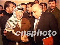 圖:阿拉法特被困后會(huì)見(jiàn)埃及外長(zhǎng)馬歇爾 2002年04月14日 16:05 ![]() 12日,巴勒斯坦民族權(quán)力主席阿拉法特(前左)在被圍困15天的拉馬拉官邸后會(huì)見(jiàn)了埃及外長(zhǎng)馬歇爾,馬歇爾是阿拉法特被困拉馬拉后會(huì)見(jiàn)的首位阿拉伯國(guó)家內(nèi)閣成員。中新社