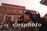 圖:韓國(guó)媒體密切關(guān)注四·一五事件 2002年04月17日 07:47 ![]() 韓國(guó)駐北京記者十六日在戒備森嚴(yán)的賓館外拍攝。這家位于北京順義的賓館下榻著四·一五遇難者家屬,他們將于一兩天內(nèi)啟航赴韓。中新社記者 鄭萍萍 攝