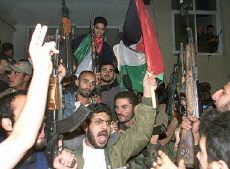 圖文:以軍撤離 阿拉法特首次公開露面(大事回放) 2002年05月02日 09:08 ![]() ![]() ![]() (法新圖) 中新網(wǎng)北京5月2日消息:在以色列完成從其在安姆安拉的總部撤軍后,阿拉法特星期四首次公開露面,但是仍然顯得非常憤怒,并斥責(zé)以軍為“恐怖分子” 在以軍撤出后不久,記者被允許進(jìn)入阿拉法特的官邸內(nèi)。數(shù)十名巴勒斯坦安全人員揮舞著槍支,鼓掌歡呼。還有人作出勝利的“V”字形手勢(shì),也有人互相擁抱慶祝。 但是阿拉法特的情緒仍然非常憤怒。他在以色列撤軍后的首次談話中說:“我發(fā)生什么事并不重要,重要的是發(fā)生在圣誕教堂的事情,這是一種犯罪! 阿拉法特大聲地說道:“這對(duì)于巴勒斯坦人,對(duì)于阿拉法特,對(duì)于穆斯林,對(duì)于基督徒,對(duì)于聯(lián)合國,對(duì)于美國和俄羅斯來說,都是不可接受的! 阿拉法特稱以軍士兵為“恐怖分子、納粹和種族主義者”他顯得非常疲憊,在長達(dá)一個(gè)月的圍困中消瘦了不少,但是他針對(duì)以色列發(fā)表的演說比往常更激烈。 附:巴勒斯坦民族權(quán)力機(jī)構(gòu)主席阿拉法特被圍困大事記 2001年 2001年12月3日:以色列空軍空襲阿拉法特在加沙的官邸。次日,以政府宣布巴勒斯坦民族權(quán)力機(jī)構(gòu)為“支持恐怖主義的實(shí)體”。同時(shí),以軍轟炸阿拉法特的專用直升機(jī),破壞加沙國際機(jī)場(chǎng),轟炸拉姆安拉阿拉法特官邸。受以軍圍困的阿拉法特留在拉姆安拉的官邸。 12月13日:以色列安全內(nèi)閣召開緊急會(huì)議,決定斷絕同阿拉法特的聯(lián)系,稱阿拉法特不再同以色列有任何關(guān)系。 12月24日:以政府禁止阿拉法特前往伯利恒參加圣誕彌撒。 2002年 2月24日-28日:歐盟負(fù)責(zé)外交與安全政策的高級(jí)代表索拉納出訪中東,進(jìn)行新一輪拯救中東和平的外交努力。 3月13日:聯(lián)合國安理會(huì)通過決議,首次表示支持建立巴勒斯坦國的“遠(yuǎn)見”,敦促巴以沖突雙方積極配合國際社會(huì)的調(diào)解努力,立即停止一切暴力沖突,恢復(fù)和談。 3月27日:在阿拉法特缺席的貝魯特第14次阿拉伯國家首腦會(huì)議上,沙特阿拉伯王儲(chǔ)阿卜杜拉正式提出中東和平新建議,供大會(huì)審議通過。 3月29日:以政府以境內(nèi)不斷發(fā)生自殺性爆炸為由,宣布阿拉法特為“敵人”。以軍大舉入侵約旦河西岸城市拉姆安拉,并攻入了阿拉法特官邸。同日,以軍發(fā)動(dòng)“防衛(wèi)墻軍事行動(dòng)”,對(duì)杰寧市及杰寧難民營發(fā)動(dòng)大規(guī)模軍事襲擊。到4月19日,杰寧難民營始終處于以軍的重兵占領(lǐng)之下。巴方指責(zé)以軍在杰寧難民營的軍事行動(dòng)中至少殺死了500人,使難民營中8000多名巴難民無家可歸。巴方要求聯(lián)合國派出調(diào)查組進(jìn)行調(diào)查。 3月30日:聯(lián)合國安理會(huì)通過1402號(hào)決議,呼吁中東沖突雙方立即實(shí)現(xiàn);,要求以色列從包括巴勒斯坦城市拉姆安拉在內(nèi)的被占領(lǐng)土撤軍。 4月1日:以軍隊(duì)對(duì)約旦河西岸巴控制區(qū)再次發(fā)動(dòng)大規(guī)模軍事進(jìn)攻,并圍困了在拉姆安拉的阿拉法特總統(tǒng)府,以巴緊張局勢(shì)不斷升級(jí)。 4月5日:美國中東特使津尼在拉姆安拉同阿拉法特舉行會(huì)晤。 4月15日:以軍在拉姆安拉逮捕巴勒斯坦民族解放運(yùn)動(dòng)(法塔赫)在約旦河西岸的總書記巴爾古提。以方指控他是針對(duì)以色列的自殺爆炸和襲擊事件的主要組織者。 4月17日:美國國務(wù)卿鮑威爾結(jié)束在中東地區(qū)的穿梭訪問。為期10天的斡旋中,他三會(huì)以色列總理沙龍,兩晤巴勒斯坦領(lǐng)導(dǎo)人阿拉法特,終究沒有說服雙方達(dá)成一個(gè);饏f(xié)議。 4月19日:聯(lián)合國安理會(huì)通過第1405號(hào)決議,授權(quán)成立杰寧調(diào)查組,負(fù)責(zé)對(duì)以軍進(jìn)攻難民營時(shí)殺害巴平民的事實(shí)真相進(jìn)行調(diào)查。但以色列方面則多次以調(diào)查組人員構(gòu)成不合理為由拒絕該小組進(jìn)入約旦河西岸。聯(lián)合國調(diào)查組滯留日內(nèi)瓦。 4月28日:以同意接受美國總統(tǒng)布什提出的旨在結(jié)束對(duì)巴領(lǐng)導(dǎo)人阿拉法特圍困的新建議。 4月29日:以色列和巴勒斯坦雙方證實(shí),3月29日以來一直被圍困在拉姆安拉官邸的巴勒斯坦民族權(quán)力機(jī)構(gòu)主席阿拉法特從當(dāng)天起重獲自由。 5月2日:在以色列完成從其在安姆安拉的總部撤軍后,阿拉法特首次公開露面,但仍憤怒地斥責(zé)以軍為“恐怖分子”。