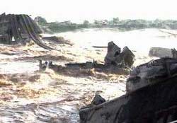 圖文:因洪水而中斷的隴海鐵路今晨恢復(fù)通車 2002年06月10日 14:06 ![]() 因洪水中斷的西安市隴海鐵路灞河大橋恢復(fù)通車 中新社西安六月十日電(張珂冽瑋)因山洪暴發(fā)而被沖垮的陜西省西安市隴海鐵路灞河大橋,已于今日凌晨零點(diǎn)五十五分恢復(fù)通車。有關(guān)人士稱,昨日滯留西安的近萬名旅客現(xiàn)已基本疏散。截至今天中午,已通過的雙向?qū)﹂_客車達(dá)到十五列。 據(jù)了解,灞河大橋位于隴海鐵路西安站以東,始建于一九三四年,因橋齡較長,橋基飽經(jīng)風(fēng)蝕雨刷。九日凌晨至下午的一場大暴雨之后,灞河洪水流量達(dá)到每秒六百立方米。四個(gè)橋墩被沖掉,五孔橋被沖垮,造成一百零五米長的一段鐵路橋完全垮塌斷裂,繁忙的隴海鐵路上下行一度中斷達(dá)八個(gè)多小時(shí),幸無人員傷亡。 記者今天在現(xiàn)場采訪時(shí)看到,昔日干涸的灞河洶涌澎湃,渾黃的激流拍打著河岸,在河床上形成了落差不等的瀑布,氣勢壯觀。河岸上站滿了搶險(xiǎn)人員,大型挖掘機(jī)、推土機(jī)等搶險(xiǎn)設(shè)備源源不斷地開赴現(xiàn)場。大批警察疏導(dǎo)交通,維持秩序,協(xié)助搶險(xiǎn)。 一位老大爺心有余悸地告訴記者,昨天下午三點(diǎn)半,一列開往安康的火車剛剛從距隴海線灞橋鐵路橋東側(cè)的西康鐵路橋開過,一聲巨響,灞橋鐵路橋第四號橋墩轟然倒塌了。 據(jù)西鐵分局副局長杜振才介紹,為了盡快恢復(fù)隴海線的通車,當(dāng)?shù)罔F路部門臨時(shí)修建一條便線與隴海線毗鄰的西康鐵路新橋相連。今日零點(diǎn)五十五分,第一列旅客列車K一七三(青島至蘭州)順利通過灞河大橋。 杜振才副局長表示,目前仍在繼續(xù)加固西康線新橋,每小時(shí)通過火車數(shù)為三列,有部分列車臨時(shí)改行其它線路,昨晚繞行列車數(shù)為十一列。 據(jù)透露,中國鐵道部對此十分重視,一再敦促盡快落實(shí)灞河大橋修復(fù)方案。現(xiàn)投入的搶險(xiǎn)人力達(dá)一千五百人左右,估計(jì)修復(fù)工作需耗時(shí)兩至三個(gè)月左右。(完) 中新網(wǎng)北京6月10日消息:6月9日下午,流經(jīng)西安市東郊的灞河水流猛漲,將隴海線西安灞橋段鐵路大橋沖垮,致使交通大動(dòng)脈隴海鐵路線中斷。據(jù)中央電視臺報(bào)道,今天早上6時(shí)20分開始,隴海線受阻列車從坍塌鐵路大橋旁的西康鐵路橋通過,隴海鐵路已經(jīng)臨時(shí)恢復(fù)通車。 據(jù)報(bào)道,工程部門計(jì)劃近期在坍塌鐵路橋處搭一座軍便橋,并計(jì)劃重新設(shè)計(jì)修建坍塌的鐵路橋。 6月9日下午,灞河水波濤洶涌,出現(xiàn)近20年來最大洪水。15時(shí)30分左右,隴海線西安至臨潼間的368米長的灞橋鐵路橋第4號橋墩轟然倒塌,鐵路線攔腰垮塌陷入激流。至17時(shí),隴海鐵路橋第5號、2號和1號橋墩相繼發(fā)生塌陷,造成約150米鐵路橋完全垮塌斷裂。 灞橋鐵路大橋被沖斷后,致使300多次列車滯留,隴海鐵路陷入癱瘓,滯留西安的旅客接近1萬人。 相關(guān)報(bào)道:隴海鐵路灞河大橋因洪水而中斷 客貨運(yùn)輸受阻