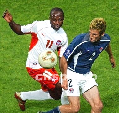 圖:波蘭3:1美國 奧利薩德貝與哈久克爭搶 2002年06月14日 21:44 ![]() 韓日世界杯D組波蘭隊(duì)與美國隊(duì)的比賽結(jié)束,比分為波蘭隊(duì)3-1戰(zhàn)勝美國,11號奧利薩德貝為波蘭隊(duì)先入一球,9號克里扎洛維茨攻入第二球,14號澤瓦拉科夫攻入第三球。美國隊(duì)21號多諾萬攻入一球。圖為波蘭隊(duì)奧利薩德貝與美國哈久克爭搶。