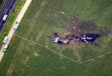 圖文:俯瞰飛機(jī)殘骸 大片地面被燒焦 2002年07月02日 19:54 德國(guó)當(dāng)?shù)貢r(shí)間7月1日夜(北京時(shí)間2日晨),一架DHL公司的波音757貨機(jī)和俄羅斯巴什基爾航空公司的圖-154客機(jī)在德國(guó)巴登-符騰堡州于伯林根鎮(zhèn)上空相撞并墜毀,至少已造成71人死亡,其中包括52名兒童。圖為散落在地上的飛機(jī)殘骸,可見(jiàn)大片地面被燒焦。(春風(fēng))