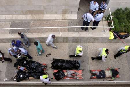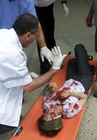(圖)耶路撒冷希伯來大學(xué)餐廳發(fā)生爆炸致7死85傷 2002年07月31日 19:08 ![]() ![]() ![]() 中新網(wǎng)北京7月31日消息:據(jù)美聯(lián)社報道,耶路撒冷東部希伯來大學(xué)的一個餐廳31日午餐時間發(fā)生爆炸,造成7人死亡,85人受傷,其中14人重傷。 巴勒斯坦激進組織伊斯蘭抵抗運動哈馬斯宣布對此次爆炸事件負(fù)責(zé),并稱這是對以色列23日轟炸加沙居民樓進行的報復(fù)。 雖然以色列的各大學(xué)目前均已放假,但發(fā)生爆炸時仍有許多留校學(xué)生正在咖啡廳用午餐。 事發(fā)后,新華社記者與在該大學(xué)區(qū)讀書的幾名中國留學(xué)生取得了聯(lián)系。據(jù)他們介紹,由于學(xué)校放假,中國學(xué)生均離開了學(xué)校,在爆炸中沒有中國學(xué)生受傷。目前有十幾名中國留學(xué)生在該大學(xué)區(qū)讀書。 死傷的人員中大部分為18-30歲的學(xué)生,其中許多為外國學(xué)生。這是自以巴沖突爆發(fā)以來,在以色列校園內(nèi)發(fā)生的首起爆炸襲擊事件。 巴勒斯坦民族權(quán)利機構(gòu)事后發(fā)表聲明譴責(zé)爆炸事件。以色列總理沙龍取消了當(dāng)天的所有日程安排,預(yù)計以色列內(nèi)閣將召開會議。 美國總統(tǒng)布什強烈譴責(zé)本次襲擊。他呼吁巴勒斯坦民族權(quán)利機構(gòu)致力制止恐怖主義,并強調(diào)美國不會放棄推動中東實現(xiàn)和平。 在昨日,巴勒斯坦激進份子,在耶路撒冷市中心,發(fā)動自殺式襲擊,造成一死七傷。