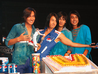 吳建豪過生日 F4和歌迷一起開心!按蟆眽(圖) 2002年08月08日 09:42 ![]() F4成員為吳建豪(左二)賀生辰 中新網(wǎng)香港8月8日消息:F4前日旋風(fēng)襲港出席百事的首播會,其后只有吳建豪多留港一天,除了跟歌迷共慶生日外,還為新歌《聽身體唱歌》招募MV女主角,另三位成員已先行返臺灣。 據(jù)此間文匯報(bào)報(bào)道說,前晚的首播會上,吳建豪和言承旭突然走下臺與歌迷握手,引起現(xiàn)場一度混亂,受到歌迷的熱情感染,言承旭和朱孝天來了兩下“胸頂胸”,教歌迷看得怦然心動。吳建豪和仔仔周渝民差點(diǎn)被歌迷的熱情感動得掉下淚來,一些歌迷更送上生日禮物給壽星仔吳建豪。 活動完畢后,他們便拉隊(duì)到郭富城的餐聽為建豪慶祝生日,城城雖沒有出現(xiàn),也送來蛋糕和鮮花。 壽星仔吳建豪昨午繼續(xù)同二百位歌迷慶祝,期間他以廣東話向在場歌迷說:“我愛你,多謝。”他又很留心看八位候選的女主角,他對各人的表現(xiàn)都很滿意。有位參賽者更表演一字馬,惜未能為她取得更高分。 吳建豪切生日蛋糕時(shí),突然興奮得拿著切蛋糕的刀轉(zhuǎn)圈,似是在耍雜技,切過蛋糕后,他迅速舔一舔刀上的蛋糕。其后,他表示因在小時(shí)候沒有太多朋友,便經(jīng)常拿刀當(dāng)玩具般玩。 問到剛挑選出來的MV女主角,到時(shí)建豪和她可有親熱鏡頭,建豪磨拳擦掌說:“不知道,要看導(dǎo)演的安排,相信歌迷知道我是工作,不會生氣!