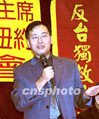 臺(tái)灣中國(guó)統(tǒng)一聯(lián)盟主席王津平八日在紐約華埠感謝僑界人士對(duì)島內(nèi)“反獨(dú)促統(tǒng)”活動(dòng)的支持,譴責(zé)陳水扁為了自己“小朝廷”的利益搞“臺(tái)獨(dú)”是不明智之舉,必輸無(wú)疑。趙海燕 攝