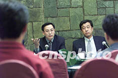 ![]() 大陸臺灣問題專家辛旗(左)、李義虎等九日在北京就陳水扁“8.3”“臺獨(dú)”言論接受媒體聯(lián)合采訪。