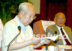 ![]() 黃埔軍校同學(xué)會在京理事九日舉行座談會,譴責(zé)陳水扁的“臺獨(dú)”言論。圖為黃埔軍校同學(xué)會會長李運(yùn)昌在會上發(fā)言。毛建軍 攝