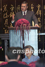 今天抵達(dá)上海的卡西亞諾夫中午出席了中方經(jīng)濟(jì)界人士舉行的午餐會(huì),并發(fā)表講話。中國(guó)國(guó)務(wù)委員吳儀、俄羅斯聯(lián)邦政府副總理赫里斯堅(jiān)科陪同出席午餐會(huì)。
