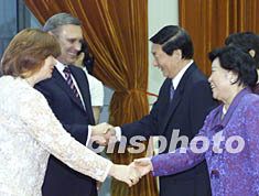 朱镕基夫人勞安、國(guó)家計(jì)委主任曾培炎等參加了今天的歡迎儀式。