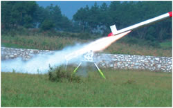 這時(shí),指揮所接到情報(bào),4批“敵”空中目標(biāo)來(lái)襲。指揮官一聲令下,部隊(duì)迅速進(jìn)入陣地嚴(yán)陣以待!皵场钡谝慌蔚1枚巡航導(dǎo)彈進(jìn)入,陣地上立即發(fā)射了紅外誘餌彈、箔條彈,只見(jiàn)空中綻開(kāi)一大片如仙女散花般的紅色光亮火球,接著又是一聲炸響,一組金屬箔條干擾彈騰空而起,瞬間在150米的空中銀光閃爍,形成了一道綿密的金屬箔條網(wǎng),對(duì)導(dǎo)彈進(jìn)行干擾。幾名戰(zhàn)士肩扛的某型便攜式地空導(dǎo)彈隨即發(fā)射,導(dǎo)彈托著長(zhǎng)長(zhǎng)的尾焰直撲目標(biāo)而去!皵场毖埠綄(dǎo)彈偏離了目標(biāo),在預(yù)先設(shè)置的假陣地中爆炸。
