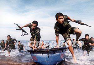 另據(jù)香港文匯報(bào)昨天發(fā)自北京的報(bào)道,解放軍東南沿海年度演習(xí)已進(jìn)入最后階段。今年軍事演習(xí)在完成集結(jié),經(jīng)過單軍兵種演練之后,三軍合成搶灘登陸演習(xí)已相繼在沿海的一些海灘、海島進(jìn)行。