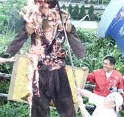 臺(tái)灣愛國同心會(huì)等團(tuán)體成員上午在“立法院”門外,以鞭打畫著李登輝臉譜人偶等方式,表達(dá)對李登輝的不滿。他們要求李登輝必須為自己的“賣國”言行道歉,否則他們將效法當(dāng)初向李登輝潑紅墨水的史力行,“李登輝走到哪里,就跟到哪里”。