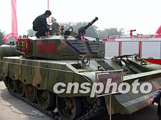 圖:中國(guó)第一輛消防坦克在北京展英姿