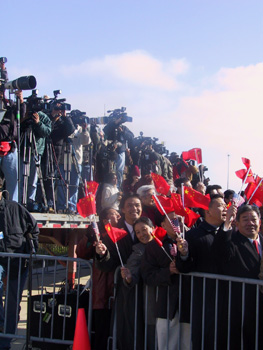 訪問(wèn)期間,江澤民主席將與布什總統(tǒng)舉行會(huì)晤,就雙邊關(guān)系和其他共同關(guān)心的問(wèn)題深入交換看法。美國(guó)和各國(guó)駐美新聞機(jī)構(gòu)均對(duì)江澤民此次訪問(wèn)給予極大關(guān)注。圖為江澤民抵達(dá)芝加哥奧海爾國(guó)際機(jī)場(chǎng)時(shí)記者爭(zhēng)先采訪的現(xiàn)場(chǎng)。