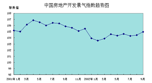 中新網(wǎng)10月23日電 國家統(tǒng)計局最新測算的全國房地產(chǎn)開發(fā)業(yè)景氣指數(shù)結果表明:9月份,“國房景氣指數(shù)”為104.97,與去年同期相比減少0.88點,比今年8月份增加0.51點,為今年以來的最高值。