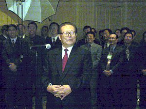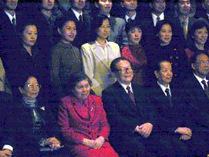 當地時間今天晚上八點四十分,正在美國進行訪問的中國國家主席江澤民在下榻的飯店會見了中國駐芝加哥總領館工作人員、留學生和華僑華人代表,并與大家合影留念。中新社記者 呂振亞 攝