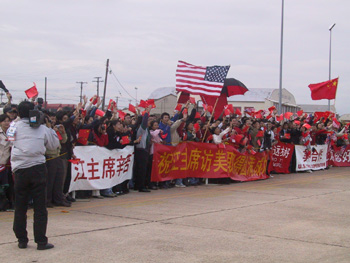 當江澤民專機降落在洛斯卡沃斯國際機場時,中國香港特區(qū)行政長官董建華夫婦,先期抵達的中國外交部長唐家璇,外經(jīng)貿(mào)部長石廣生、中國駐墨西哥大使李金章和墨西哥一名副外長等在舷梯旁迎接。