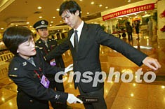 公安人員在代表駐地進(jìn)行嚴(yán)格的安檢,以確保安全