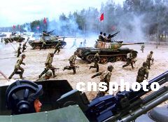 北京軍區(qū)某師合成作戰(zhàn)戰(zhàn)車隆隆譜新篇:金秋時(shí)節(jié),塞外高原某合同戰(zhàn)術(shù)訓(xùn)練基地,北京軍區(qū)某機(jī)械化師官兵以喜迎十六大的昂揚(yáng)熱情,駕馭多種新型裝備,與“藍(lán)軍”斗智斗勇,雙方各出奇招,激戰(zhàn)猶酣。