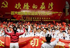 六日晚,廣州荔灣區(qū)舉行了一個(gè)大型的群眾迎“十六大”廣場(chǎng)歌會(huì),三千多位市民和部隊(duì)官兵歡聚一堂大展歌喉,表達(dá)了對(duì)偉大祖國(guó)的熱愛,對(duì)即將召開的“十六大”的期盼之情。作者:梁永強(qiáng)