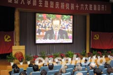 八日,中國共產(chǎn)黨第十六次全國代表大會在北京勝利召開。上海各高校師生收看十六大開幕式盛況。作者:湯彥俊