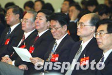 圖為財(cái)政部長(zhǎng)項(xiàng)懷誠(chéng)在中央國(guó)家機(jī)關(guān)代表團(tuán)會(huì)場(chǎng)專(zhuān)心閱讀文件。