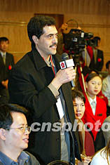在梅地亞賓館中共十六大新聞中心,此前舉行過三場記者招待會,有關(guān)人士就經(jīng)濟發(fā)展、社會保障、西部開發(fā)等問題接受了記者的采訪。今天是最后一場,又時值中國加入世界貿(mào)易組織一周年,記者采訪高潮迭起。(完)