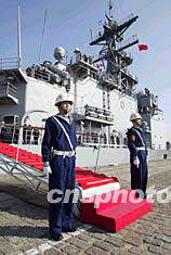 中國(guó)士兵為美國(guó)海軍“福斯特”號(hào)驅(qū)逐艦站崗
