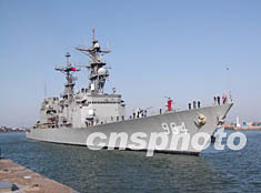 11月24日上午十時,美國海軍“福斯特”號驅(qū)逐艦駛抵青島,開始對青島進(jìn)行為期五天的友好訪問。這是自去年中美撞機(jī)事件以來,美國軍艦首次訪問中國大陸。圖為即將?看a頭的美艦。作者:鄒山
