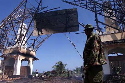 肯尼亞爆炸現(xiàn)場(chǎng)滿目瘡痍 死亡人數(shù)還會(huì)上升(組圖) (2002-11-28 20:55:48)